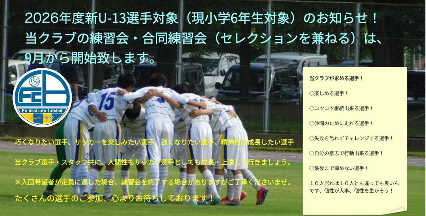 2026年度新U-13選手(現6年生)対象者合同練習会(セレクションを兼ねる)